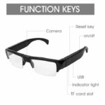 Introducing our cutting-edge Eyewear Specs Camera Audio Video Recorder Mini DVR DV Security Cam, the ultimate blend of style, functionality, and security. This sleek pair of eyewear isn’t just about fashion – it’s a powerful tool designed to capture every moment discreetly and with precision.