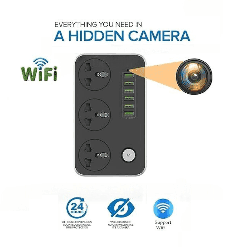 Introducing the Spy Camera Extension Board, a discreet yet powerful surveillance solution designed for home or office security needs. This innovative device seamlessly integrates into a standard surge protector, providing covert monitoring capabilities without raising suspicion. Here’s what sets it apart: